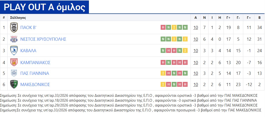 Υπενθυμίζεται ότι σώθηκαν ΠΑΟΚ Β και Νέστος, ενώ υποβιβάζονται στη Γ΄ Εθνική οι Καβάλα, Καμπανιακός, ΠΑΣ Γιάννινα και Μακεδονικός. Αναλυτικά:
