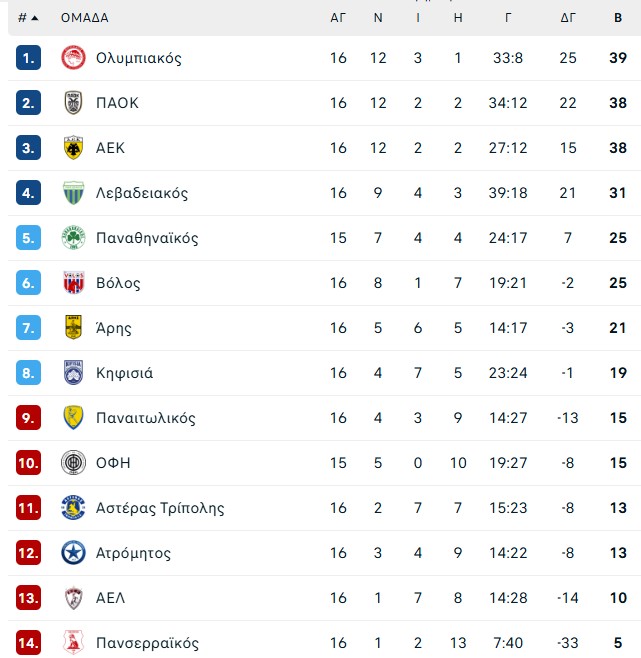 Την ίδια ώρα, ο Λεβαδειακός συνεχίζει τις υψηλές πτήσεις του, καθώς επικράτησε του Βόλου (3-1) και έμεινε στην 4η θέση και στο +6 από τον 5ο Παναθηναϊκό, ο οποίος ξεκίνησε με το… δεξί το 2026, επικρατώντας του Πανσερραϊκού.