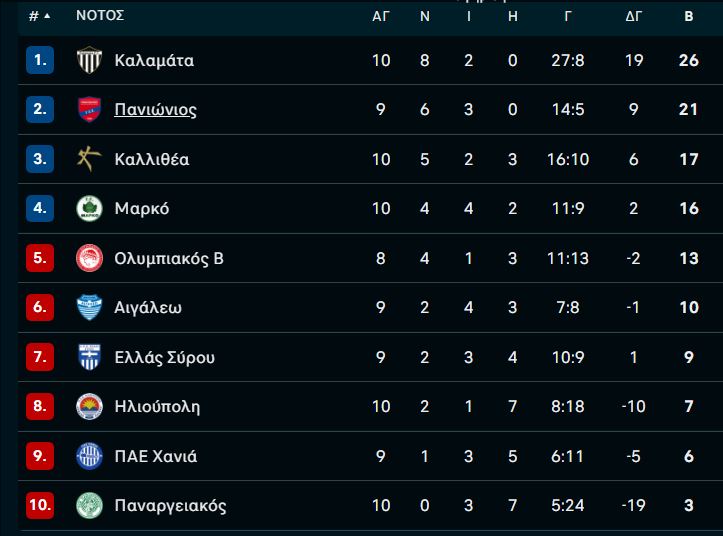 Τα αποτελέσματα της 10ης αγωνιστικής στους δύο ομίλους της Super Leaue 2, οι βαθμολογίες και η επόμενη αγωνιστική του κάθε ομίλου: