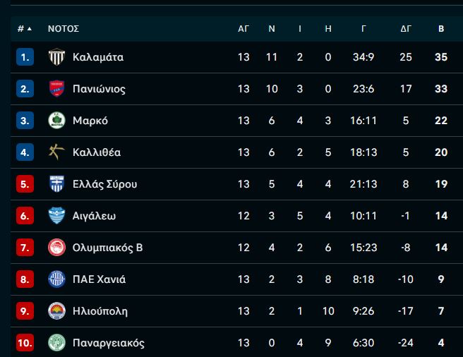 Η Βαθμολογία του Β‘ Ομίλου