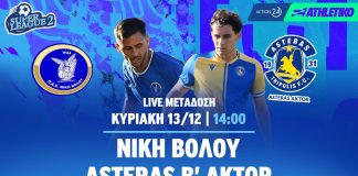 Ζωντανά ο αγώνας Νίκη Βόλου – Αστέρας B’ (14/12, 14:00)