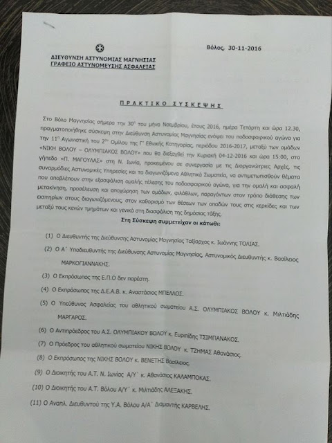 Πραγματοποιήθηκε στην Αστυνομική Διεύθυνση Μαγνησίας η σύσκεψη για το ντέρμπι της Κυριακής στο ‘Π. Μαγουλάς’, ανάμεσα στη Νίκη και τον Ολυμπιακό. Την ομάδα μας εκπροσώπησε ο πρόεδρος κ. Σάκης Τζήμας και ο κ. Βασίλης Βενέτης.